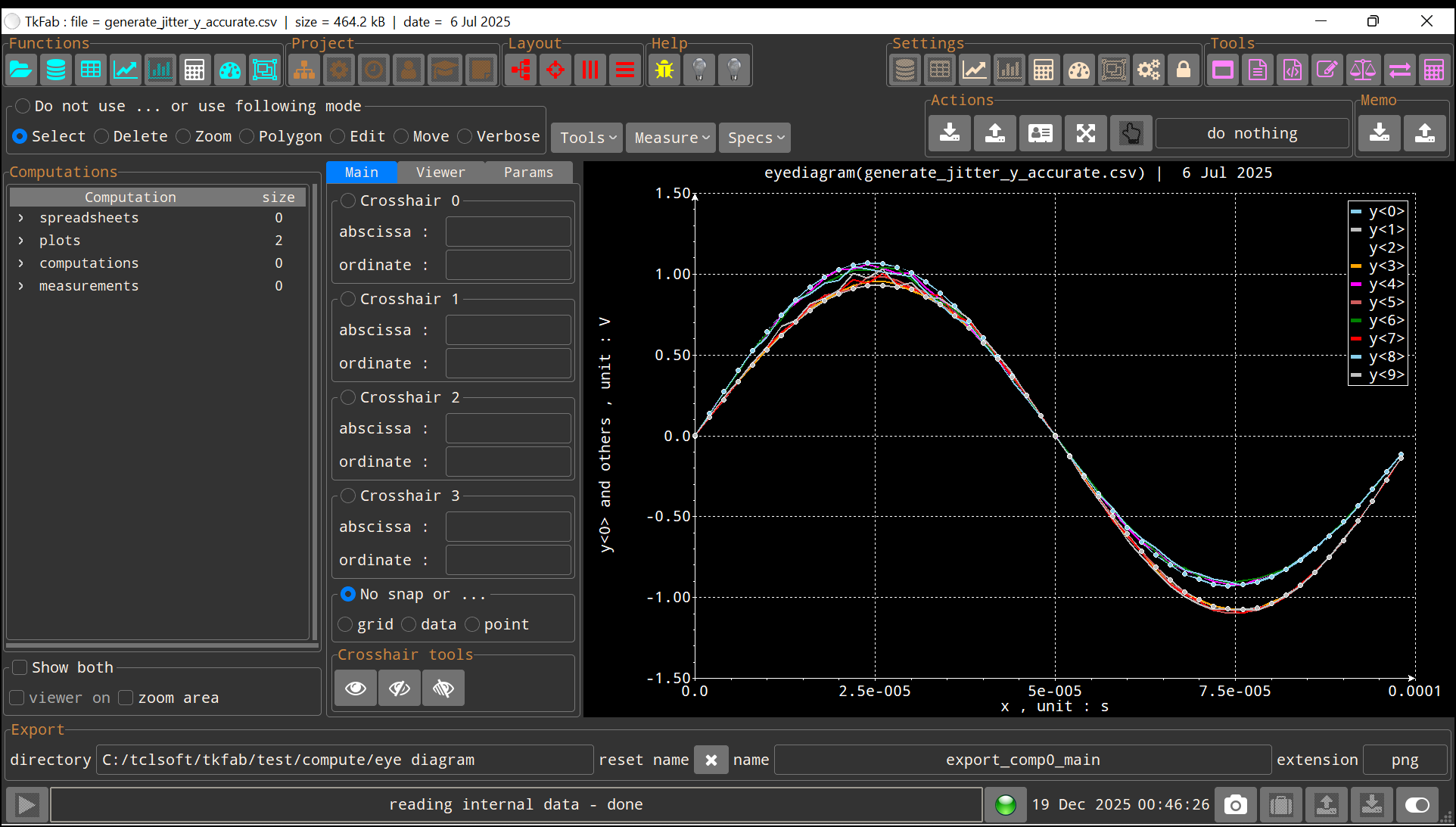 An "Eye diagram" calculation is used to display the behavior of a data set over a specific
