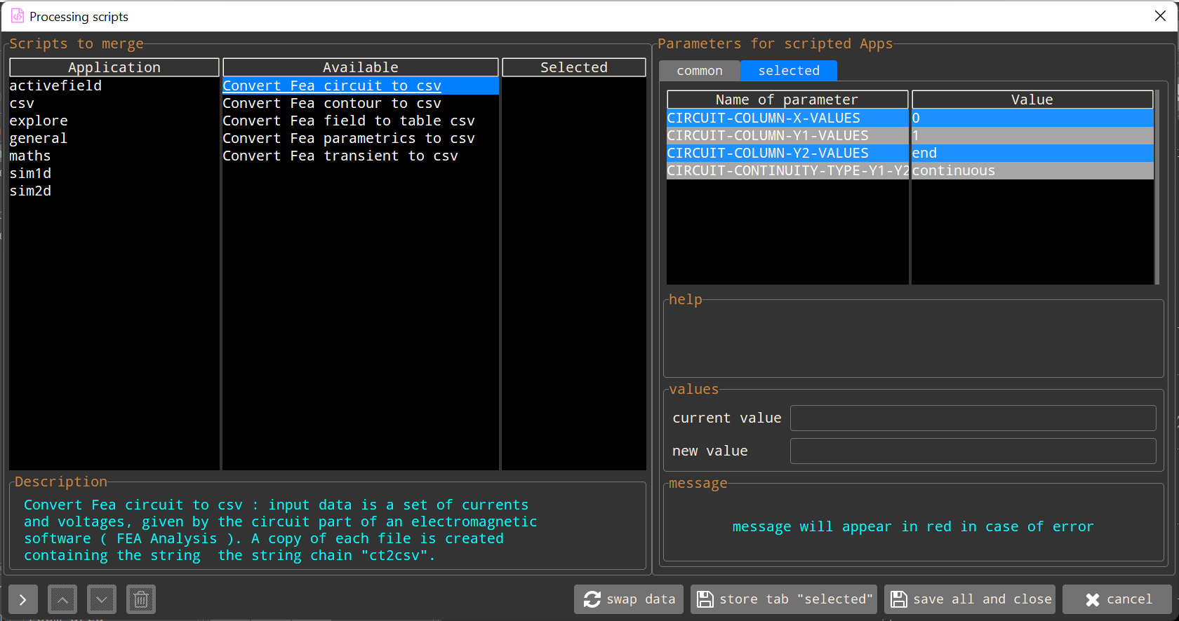 The internal script settings have been grouped and are all selectable in as in a queue. For greater ease, script functions have been also grouped into types :