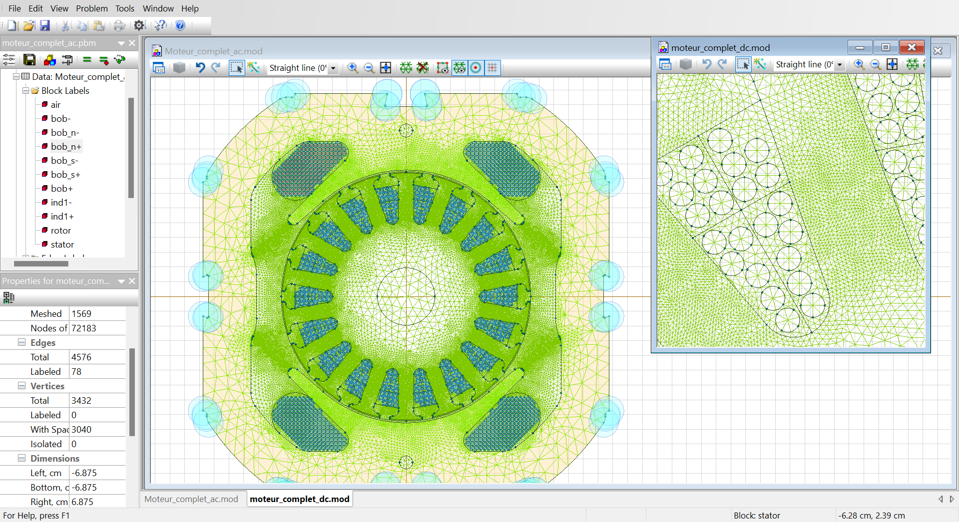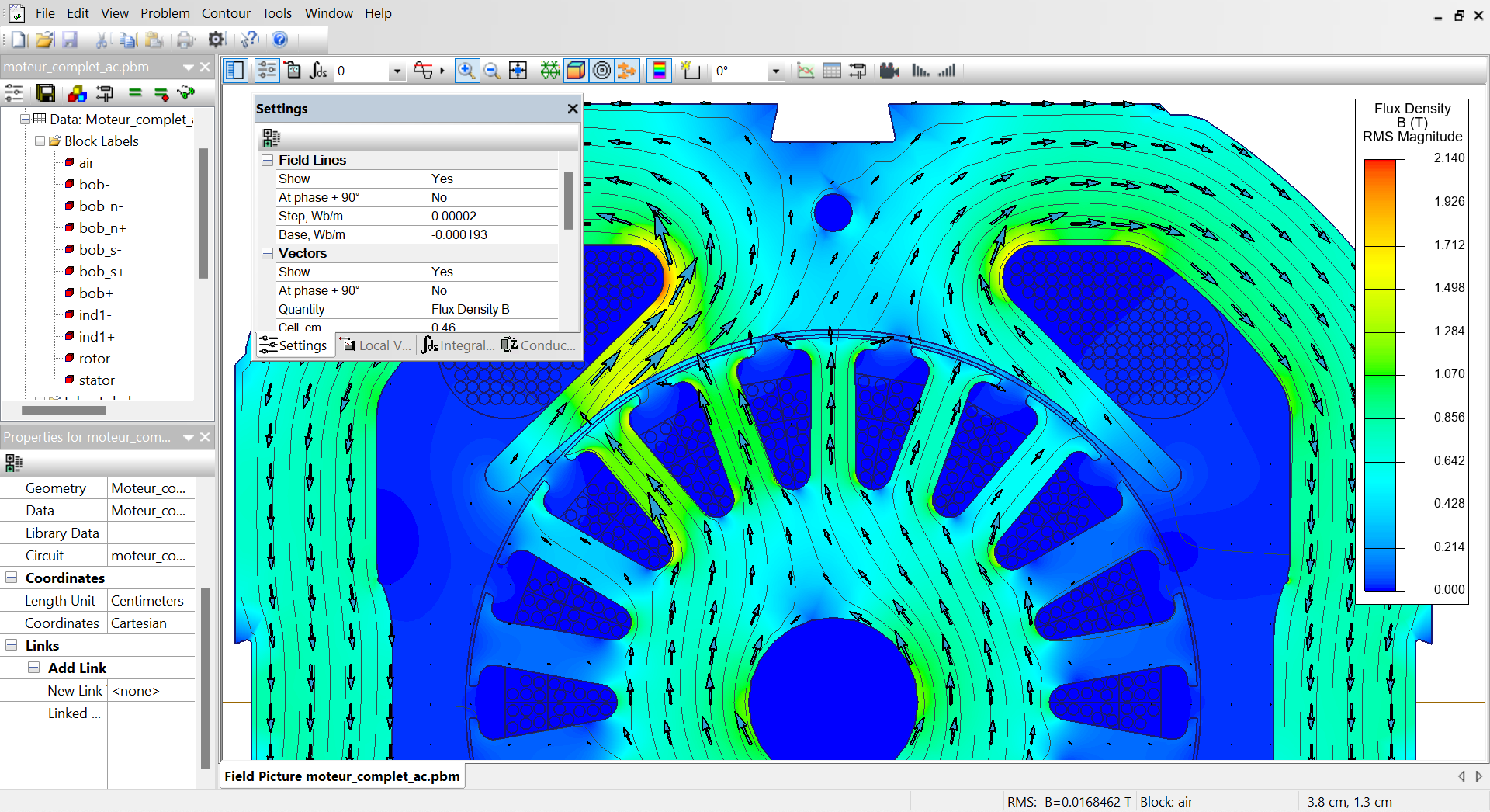 The post-processeur allows you to give a quick overview of the results using different graphical representations or tables or curves. (Note: The high field is due to linear problem solving, QuickField™ can of course solve non-linear problems)
